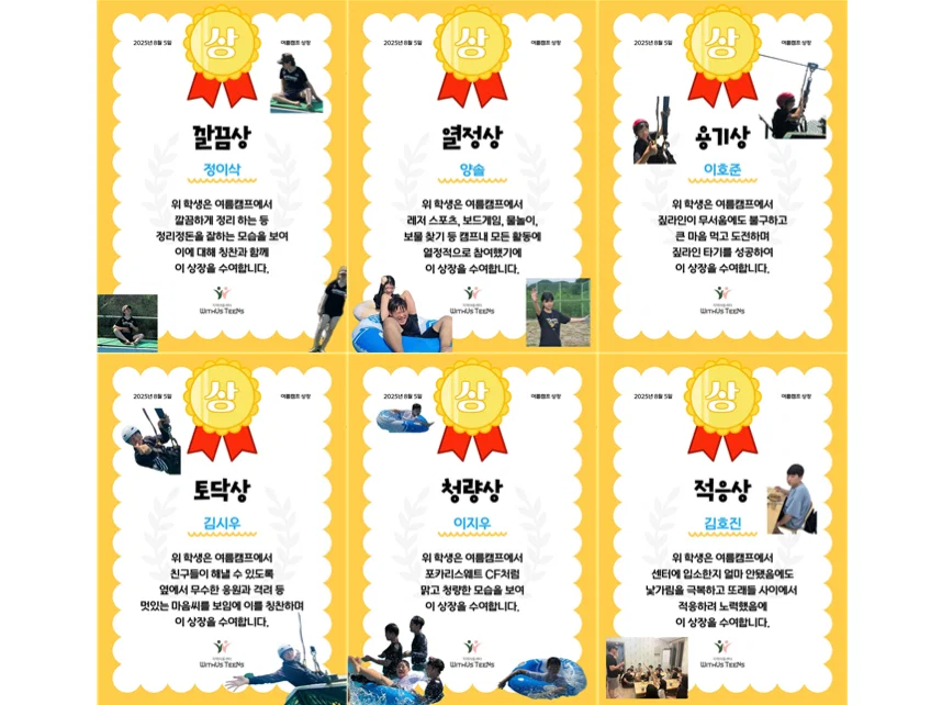 2025 E-SPORTS 카트라이더 부문 본선에 진출하여 대전으로 캠프를 다녀왔습니다. 아동들의 뜨겁고 활기찬 응원으로 '응원상'도 받았답니다. 이어 의왕 바라산 휴양림에서 즐거운 하룻밤을 묵었습니다. 모두가 안전하게 즐기고 돌아왔습니다. ❤